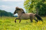 "Deutlich 5- gangveranlagter, gut aufgerichteter Junghengst mit schnellemTölt vielversprechenden Rennpassansätzen und viel Freude am laufen mit deutlich mehr Schub- als Tragkraft."