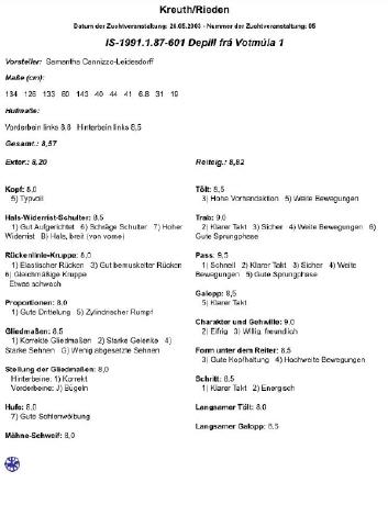 Er wurde gekört und ins Hengstbuch 1 eingetragen.