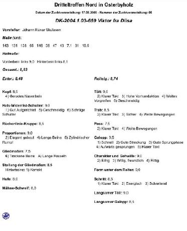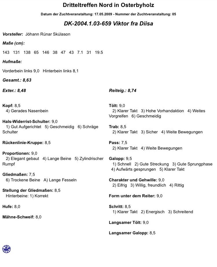 V: Viktor fra Diisa (8,63 / Ehrenpreis für Nachzucht) | |