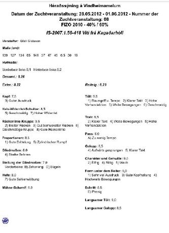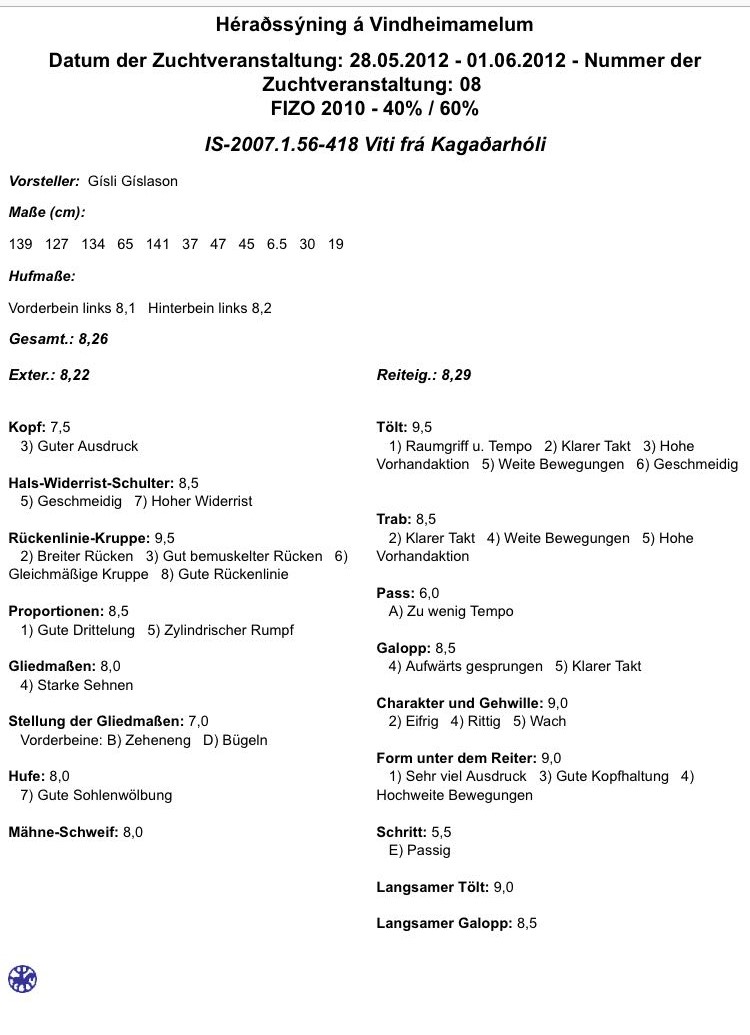 V: Viti frá Kagaðarhóli (8,26 / Ehrenpreis für Nachzucht) | |